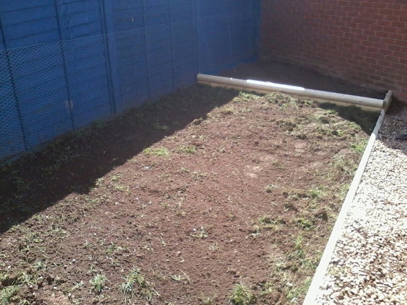 The first photo shows the turfing area the first time I saw it prior to the job, the middle photo shows the area prepped for the turf and the final photo shows the finished product. Following a few weeks of after-care and watering the lawn will be soon established and ready for a cut.