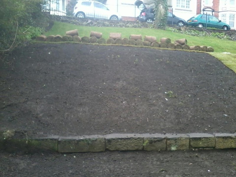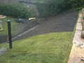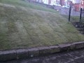 These photos show a very steep bank which I turfed. This section of turfing was part of a larger area that had recently been turfed, but I was hired in to complete the job. The turf is held in place with natural, degradable pegs so the only after care is needed would be watering and then cutting after a few weeks.